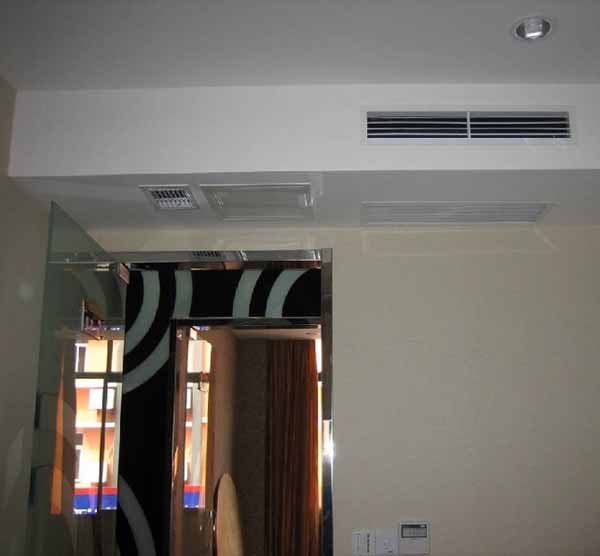 即确定空调送、回风方式与吊顶造型如何有效地结合,以保证空调效果的同时,也能保证房屋的美观。如果吊顶空间足够大,那么可以采用侧送后回的方式;如果吊顶空间不够宽敞,则可采用侧送下回的方式;如果不考虑采用吊顶形式,则可考虑如利用卫生间等相邻空间做成侧送侧回的方式。另外,送风口的合理布置也很重要,既要使气流分布照顾到房间的每个角落,更要避免送风口对人直吹。
